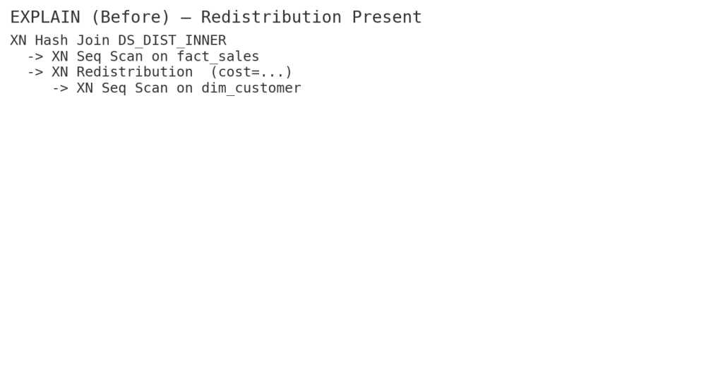 SVL_QUERY_REPORTfor execution details.STL_ALERT_EVENT_LOGfor warnings.- CloudWatch for disk usage, queue wait times, and scaling events.