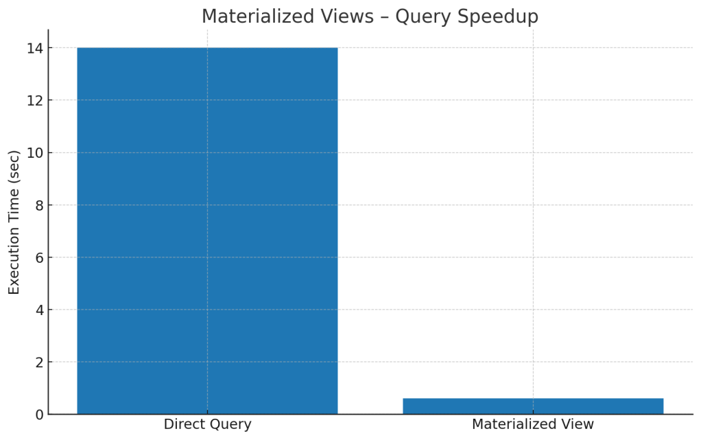 Materialized views store precomputed results for expensive queries. They refresh on demand and can turn a multi-second dashboard load into milliseconds.